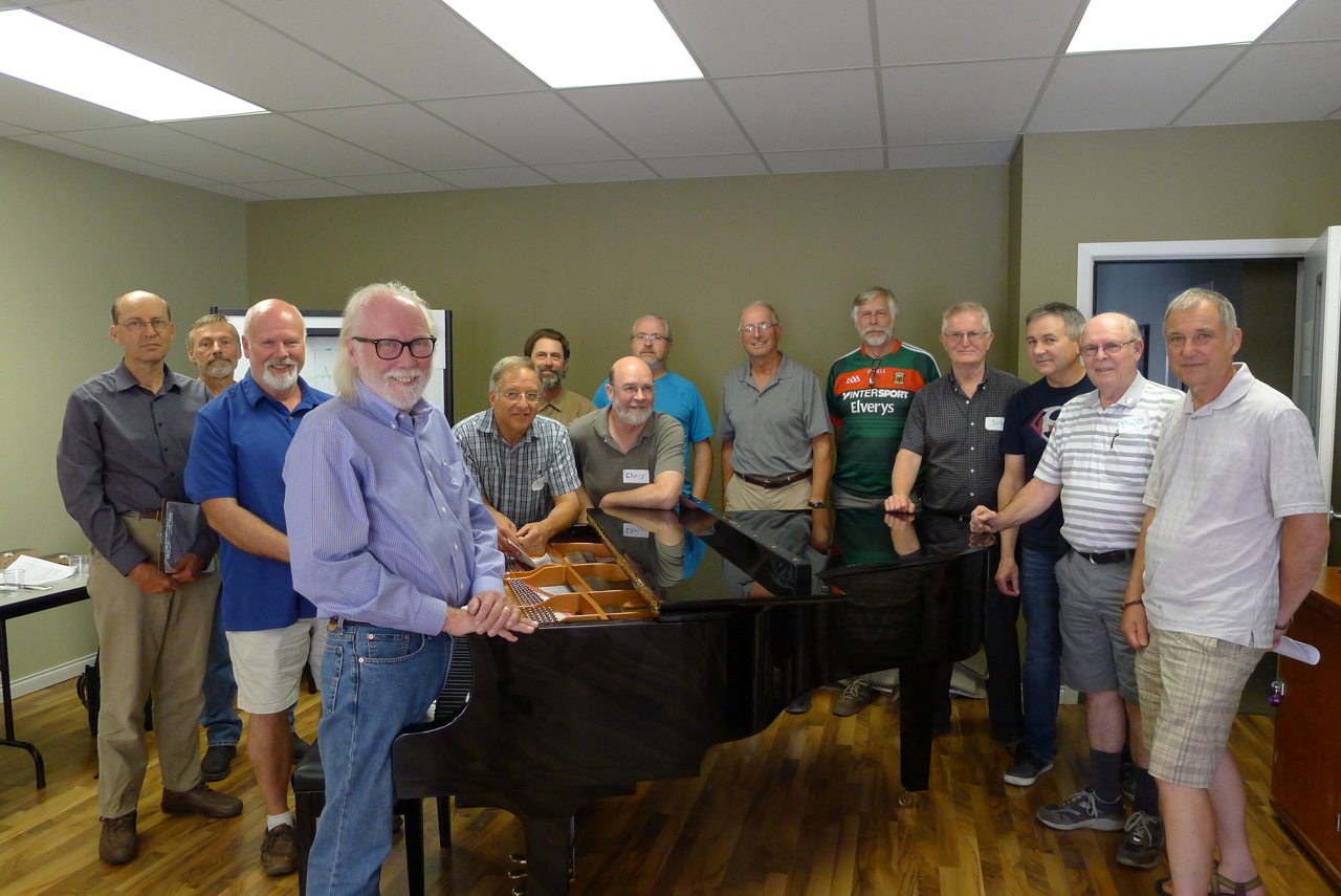 The summer, I helped organize a piano technician professional development seminar in Nanaimo on July 30th. We invited Fred Redekop from Winnipeg, a technician for 40 years who has benefitted from specialized concert tech training at Steinway (New York), Yamaha (Hamamatsu) and Bösendorfer (Vienna), among many others. Using hands-on demonstrations, Fred took us through the steps of thorough regulation and fine voicing that are required to bring an instrument to concert level. We had 16 piano technicians attend, from all over Vancouver Island, mainland British Columbia, and even Edmonton. A great day was had by all!